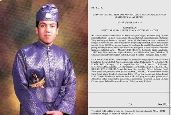 1月11日的吉兰丹州政府宪报称,东姑穆罕默德·法克里·佩特拉的任命得到吉兰丹苏丹穆罕默德五世的同意。