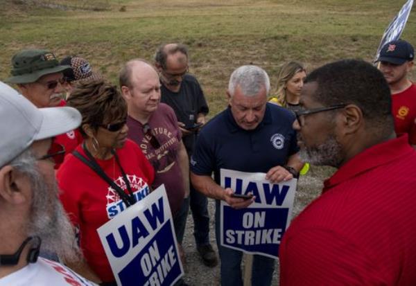在与这三家汽车制造商的合同到期后,UAW于9月15日开始对这三家汽车制造商进行有针对性的罢工。在罢工高峰期,约有4.6万名UAW工人参加了罢工,占三家公司14.6万名工会成员的三分之一左右。