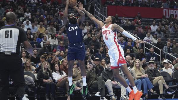 快船结束了六连败——其中五场是在哈登的帮助下——以106比100战胜休斯顿火箭,这场胜利是詹姆斯·哈登所有进攻成果中最多的,一个三分加一个犯规。