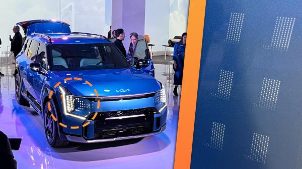 我在EV9的发布会上遇到了起亚的高级外观设计师Berk Erner,他告诉我灯光效果是早期设计草图的一部分。一旦工程师告诉他的团队这是可行的,它就被锁定在了飞行器的外观上。EV9的设计工作在COVID-19成为公众关注的问题之前就开始了,而且起亚团队必须在家工作时决定汽车的大部分外观。他告诉我,他们花了几个月的时间来决定汽车灯光的最终外观。