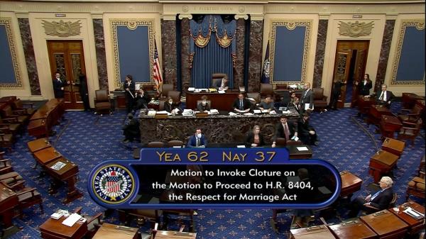 美国参议院周三推进了《尊重婚姻法案》(Respect for Marriage Act),该法案将把婚姻平等写入联邦法律,为该法案的最终通过扫清了道路。