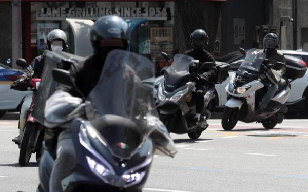 在首尔,外卖司机正忙着送快餐。这是2022年4月20日的资料照片。Newsis