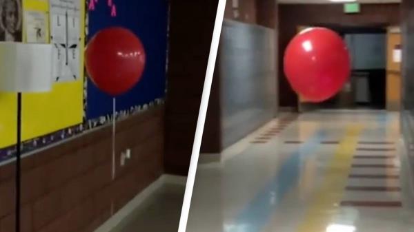 这位校门人承认,那只气球“把他吓坏了”,他说:“不管我在教室里的哪个位置,也不管我决定做什么,它都会跟着我。”