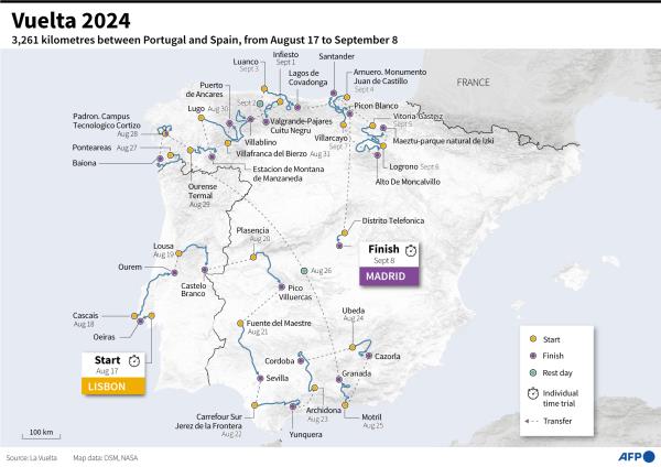 从8月17日到9月8日,葡萄牙和西班牙之间的距离为3261公里