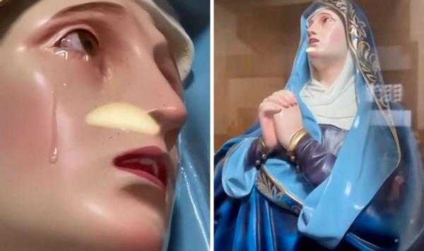 一尊圣母玛利亚雕像似乎泪流满面,这让去教堂的人感到震惊,有些人称之为“奇迹”。