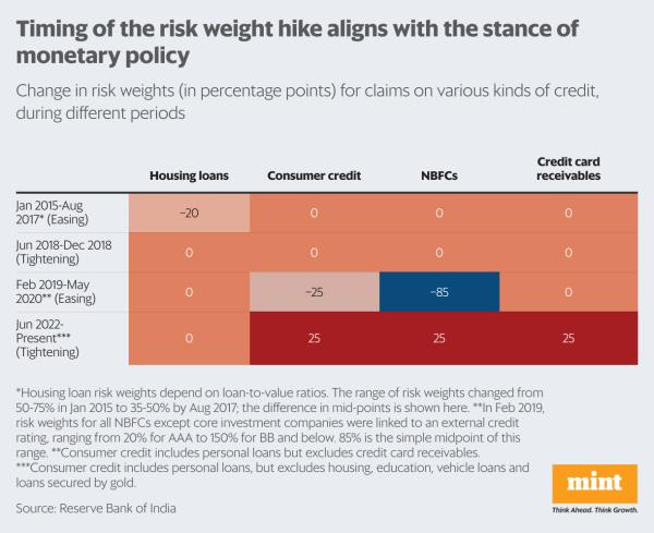 11月16日,印度储备银行(RBI)提高了银行和非银行金融公司(nbfc)的无担保贷款以及向nbfc提供的银行贷款的风险权重。此前数周,有关这些贷款爆炸式增长的警告不断,这标志着印度央行自2019年以来首次使用宏观审慎工具。