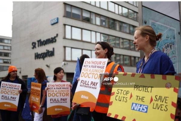 周三,英国医院医生开始了英国国家医疗服务体系70年历史上持续时间最长的罢工。
