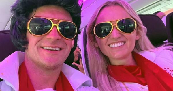 他们的情绪高涨,瑞安微笑着走向值机台,被其他乘客的热情反馈所鼓舞。他说:“我们有一些高级经济舱的票,我们希望,因为我们打扮成埃尔维斯·普雷斯利的样子,他们能把我们提升到上流社会。”