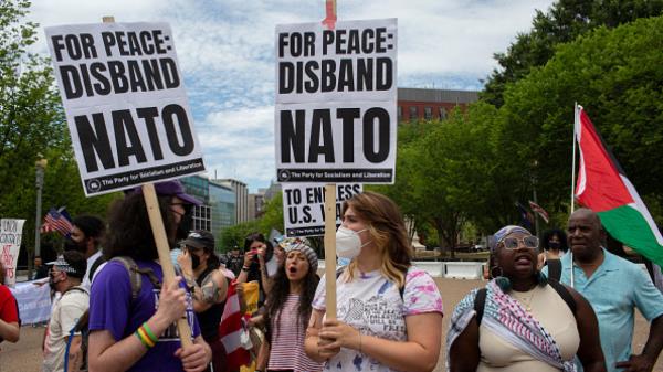 随着北约军事联盟峰会在美国举行,抗议者连续第二天要求加沙停火。