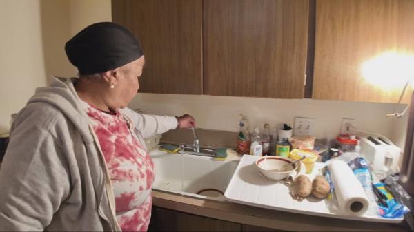 日内瓦·霍尔姆斯·詹姆斯在西雅图的公寓厨房里没有热水。