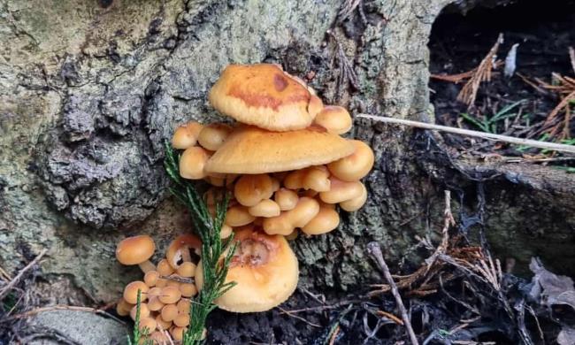 我和妈妈去树林里散步。天气很冷。刺骨的风捏着我的脸,我几乎感觉不到我的手指。当我把下巴塞进夹克领子里取暖时,我向下瞥了一眼,注意到树桩上长着一簇引人注目的蘑菇。它们的光泽和金橙色让我想起了《爱丽丝梦游仙境》。