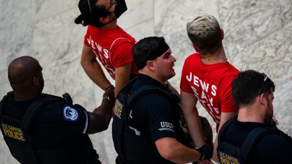 周二,数百名美国犹太活动人士在华盛顿国会山抗议美国军事支持以色列并呼吁加沙停火后被警方逮捕。一天后,以色列总理本雅明·内塔尼亚胡(Benjamin Netanyahu)将在国会发表演讲。