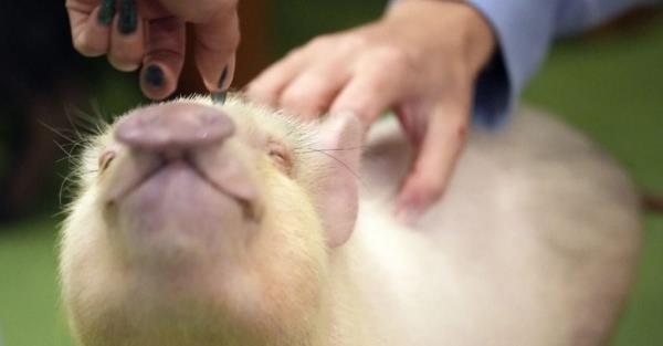 这种动物被称为“微型猪”,即使成年,也不会比柯基狗大。