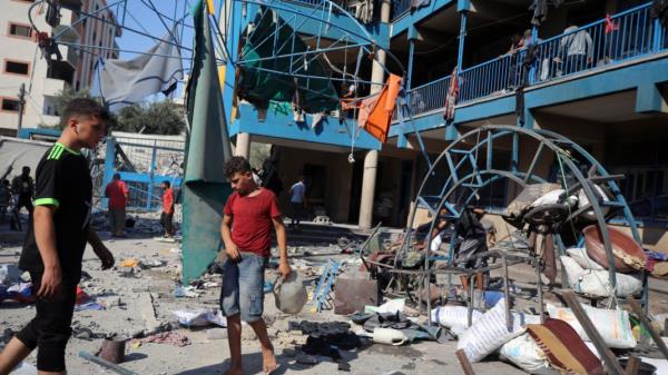 据加沙地带媒体办公室称,以色列对加沙地带努西拉特难民营的一所近东救济工程处学校发动袭击,造成17人死亡,80人受伤。