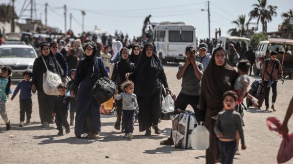 人们看到这些新近流离失所的人步行数十公里,以逃离以色列持续的轰炸,也许是为了把他们的孩子和妇女从他们所说的“地狱”中拯救出来。