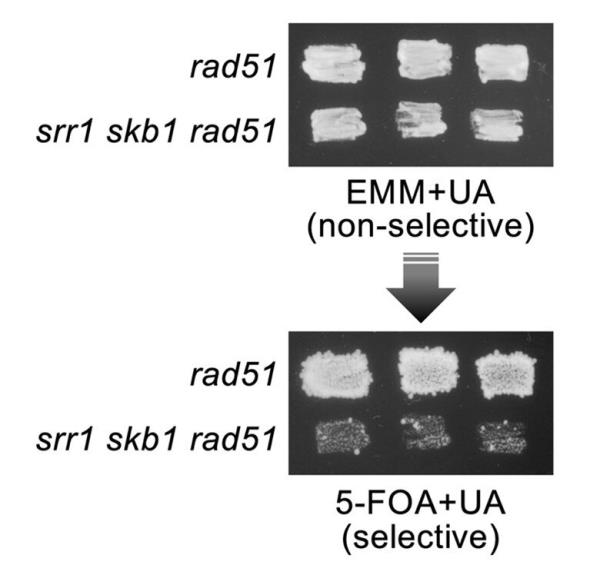 研究人员随后在缺乏Rad51的酵母中删除了Srr1和Skb1基因,并评估了GCR的发生。缺乏Srr1和Skb1的细胞表现出GCR率降低;缺乏这两种基因的细胞表现出更低的GCR率。