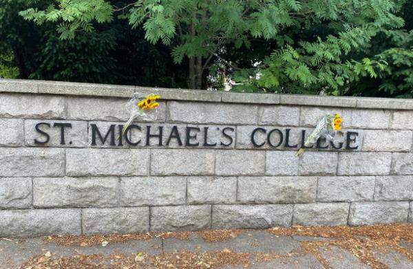 今天礼拜前,圣迈克尔学院外的鲜花
