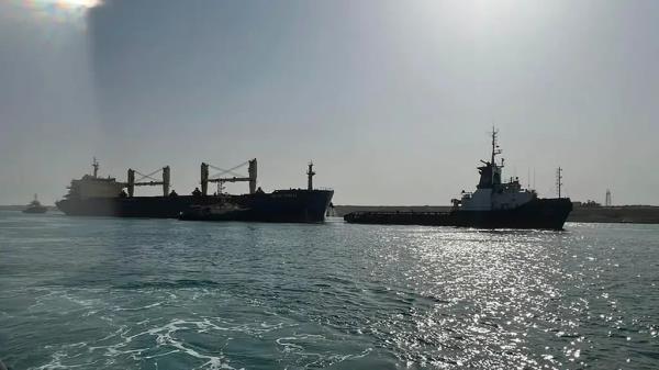一艘悬挂香港旗帜的船只在埃及苏伊士运河短暂搁浅,暂时中断了这条重要航道。